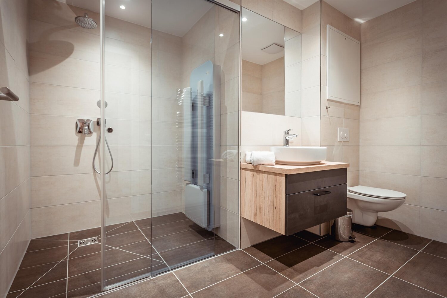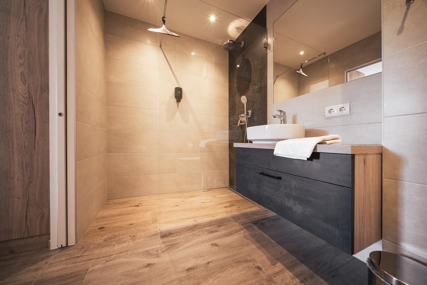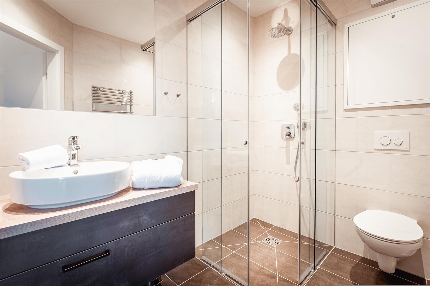 • 2 Bäder mit Regendusche und Waschtisch