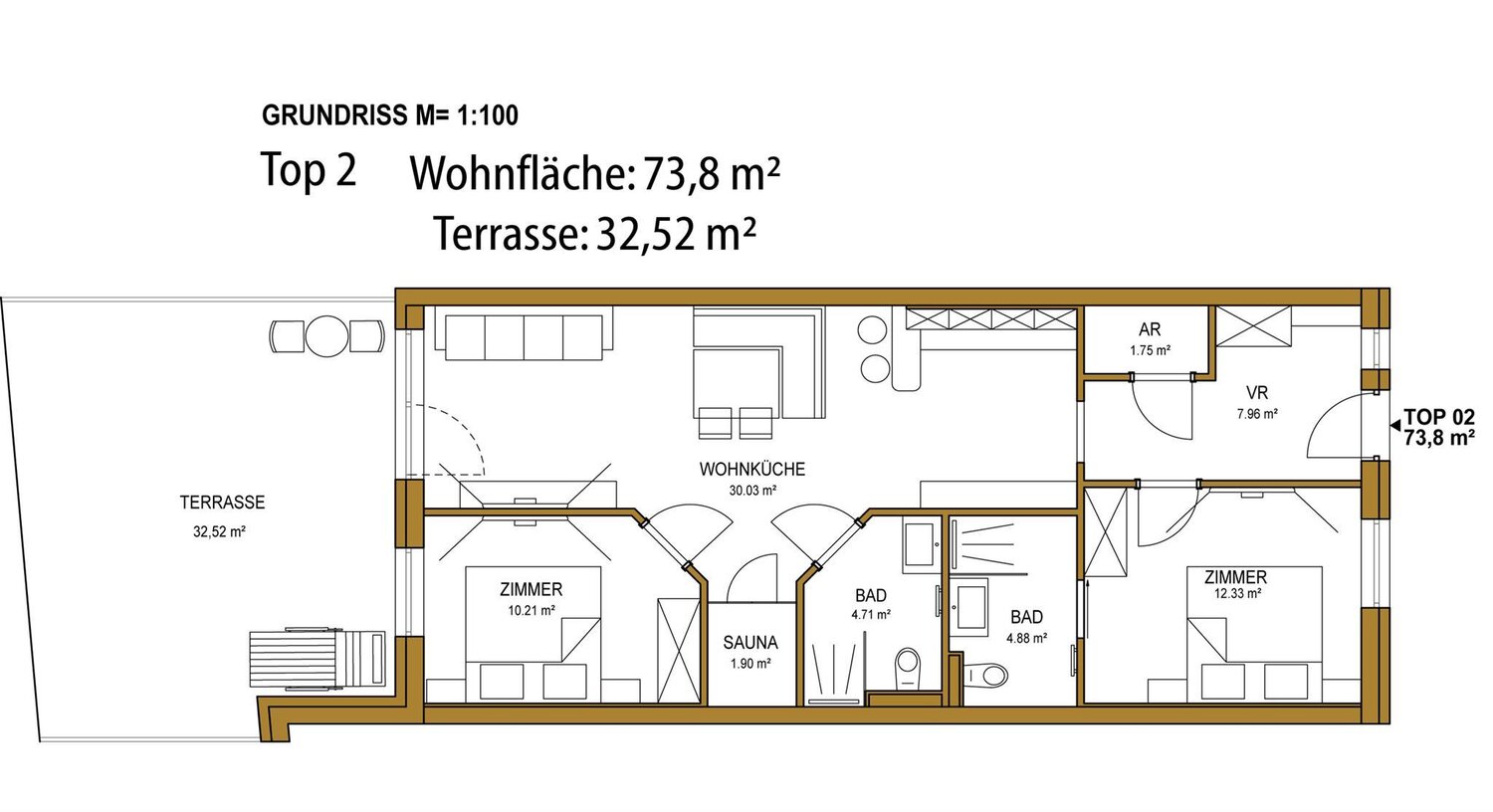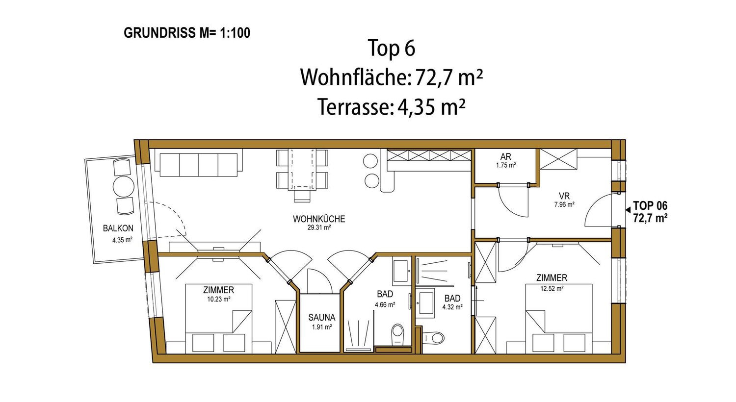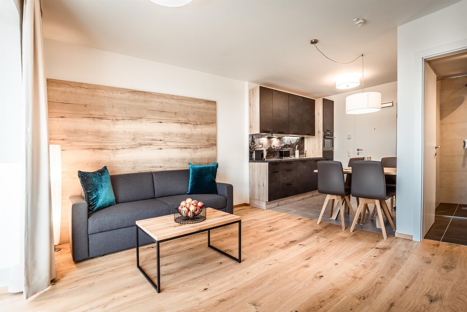 Die Highlights: eine eigene Sauna in fast allen Appartements, Balkon oder Terrasse mit Aussicht auf die Hochwurzen (nur Top 8 ohne Außenfläche), ein modernes Design mit liebevollen Details, Tiefgarage und kurze Wege zu Supermarkt, Bus, Shopping und Minigolf.