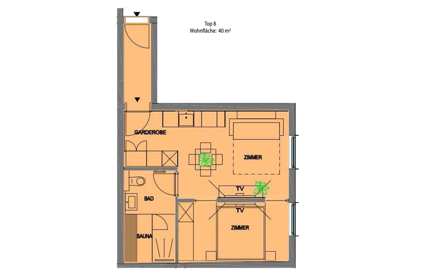• Sauna im Appartement (teilweise)