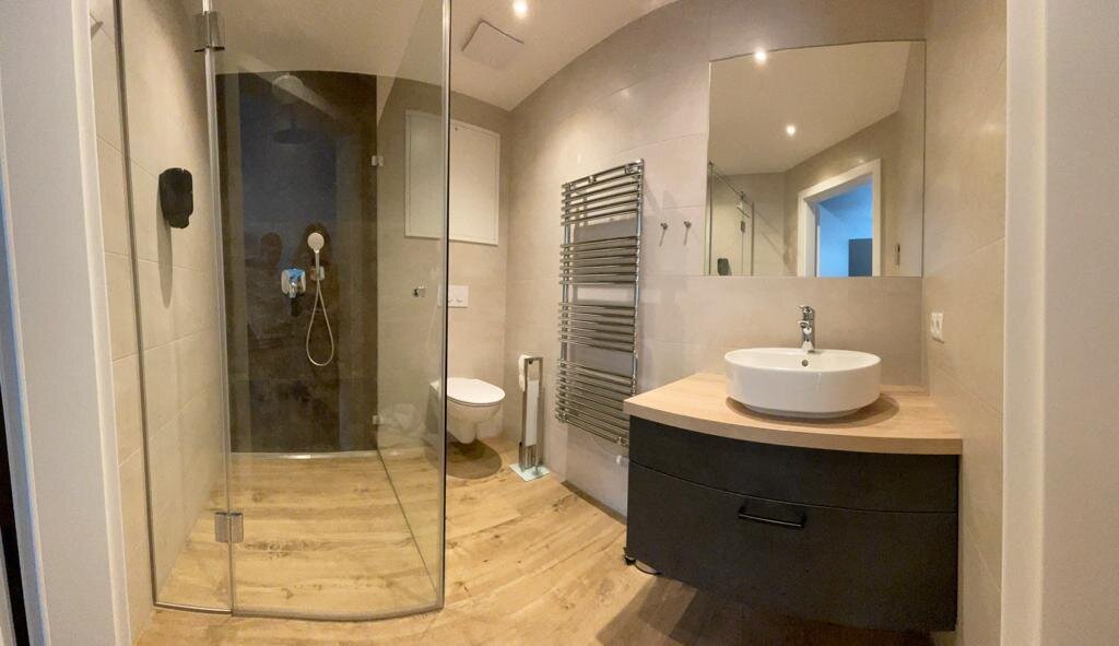 • 1 Bad mit Regendusche, Waschtisch und WC