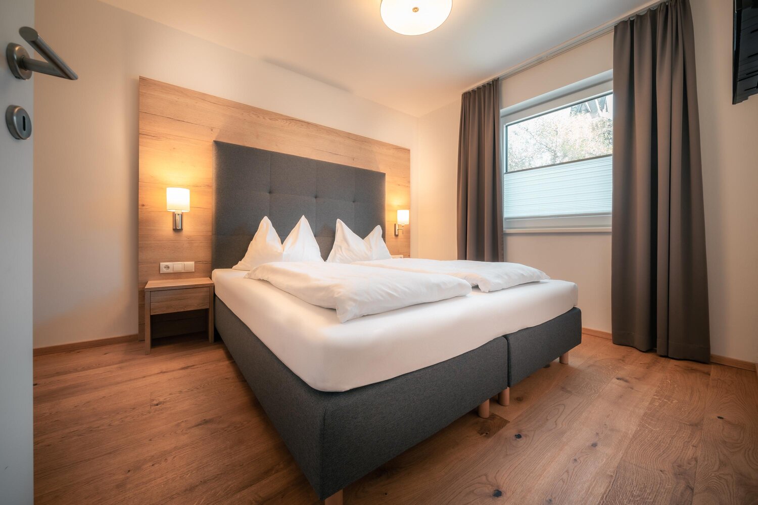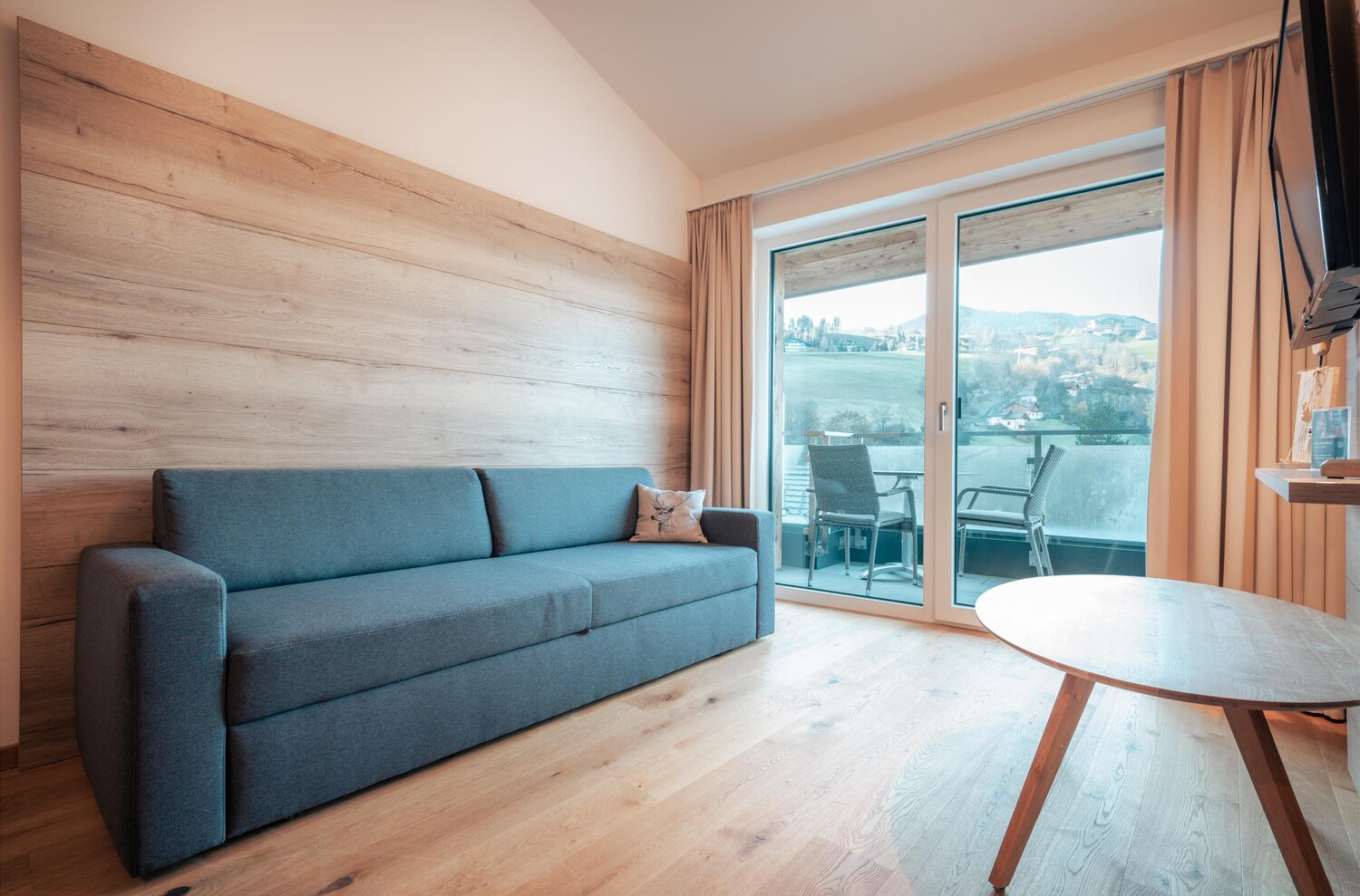 Geräumiges Hotelzimmer mit Kingsize-Bett und Bergblick