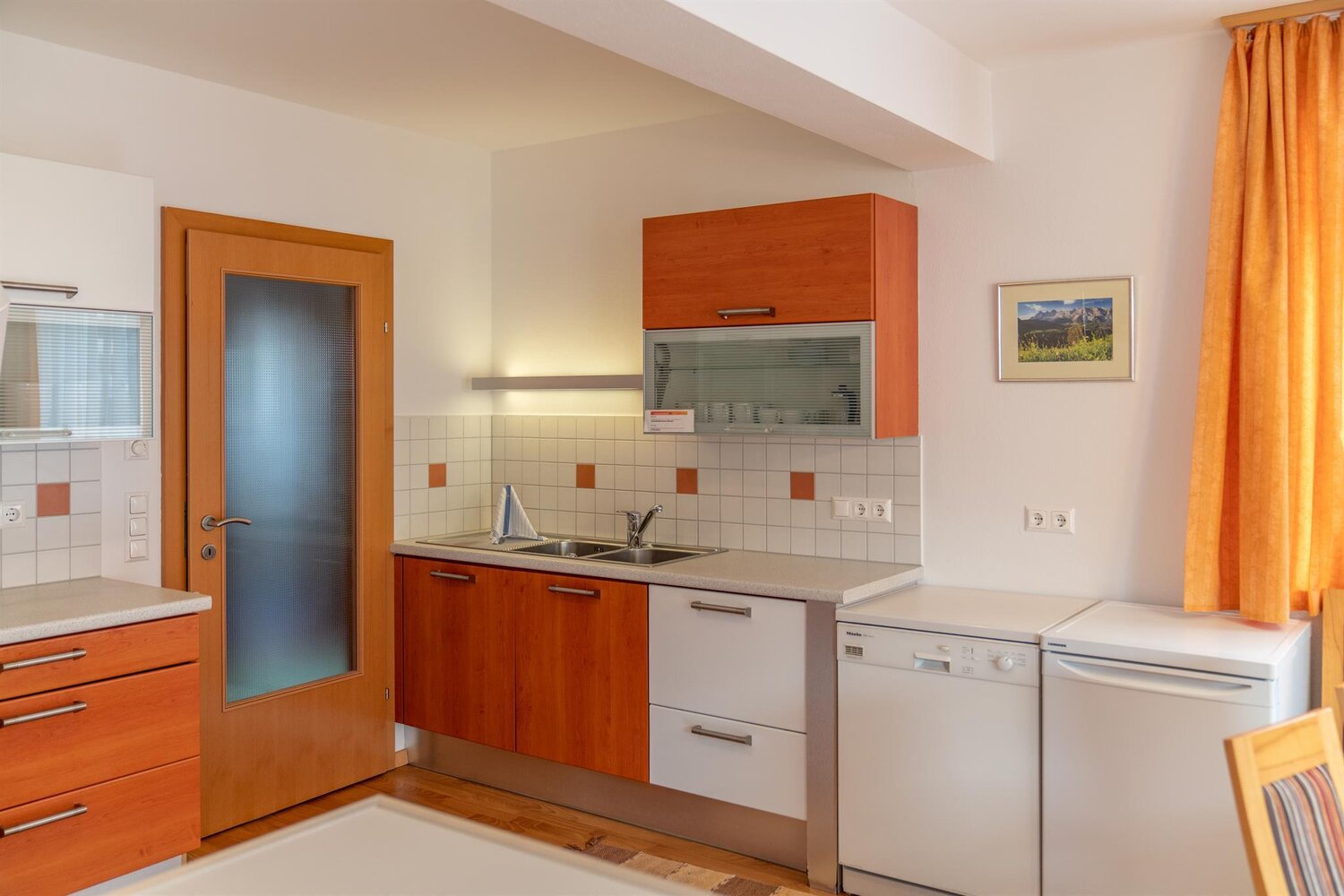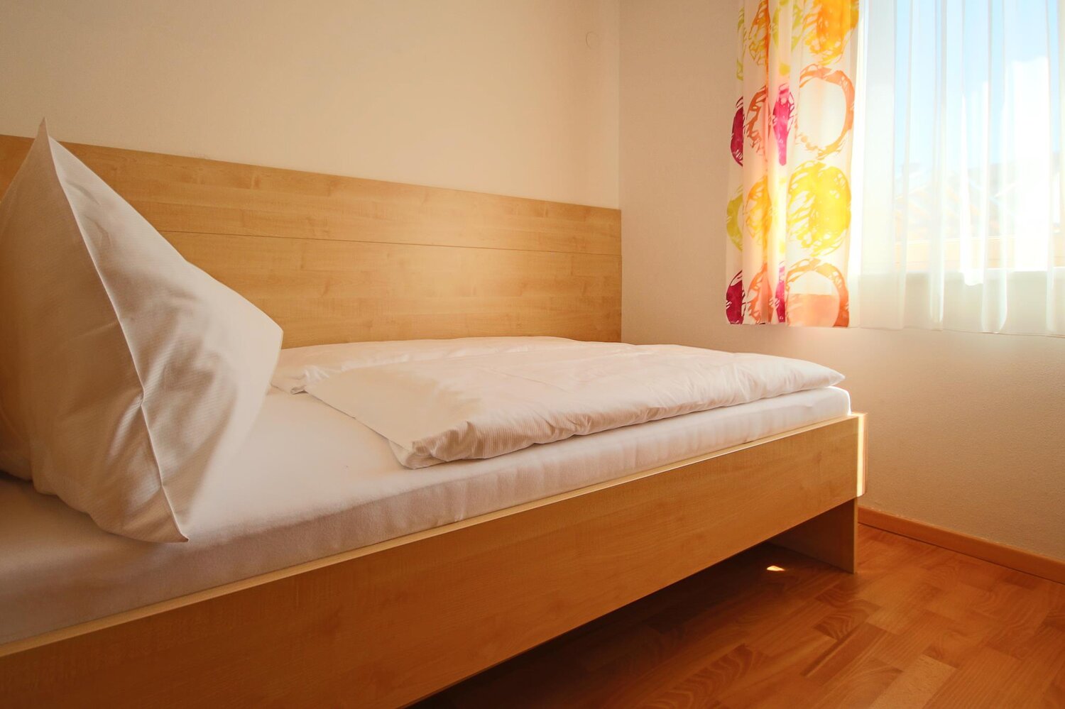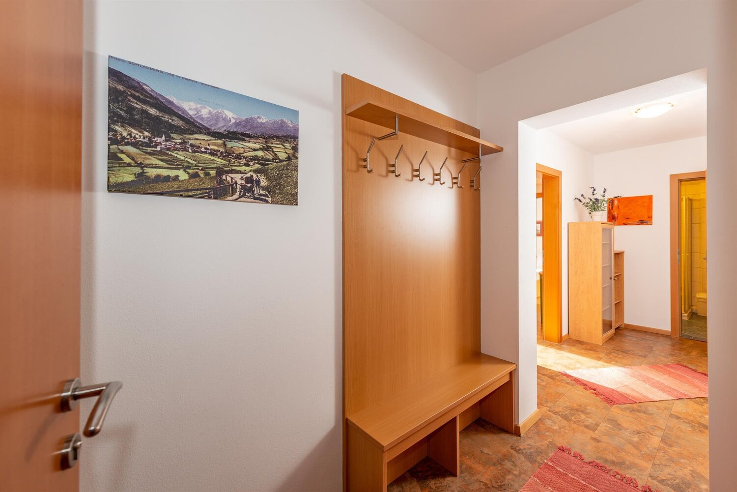 Die zwei Ferienwohnungen liegen nebeneinander im selben Stockwerk und bieten eine sonnige Ausrichtung mit großzügigem Balkon und Ausblick auf die umliegende Bergwelt. Ideal für befreundete Familien oder kleine Gruppen, die gerne mittendrin wohnen und trotzdem ihre eigenen Rückzugsorte haben.