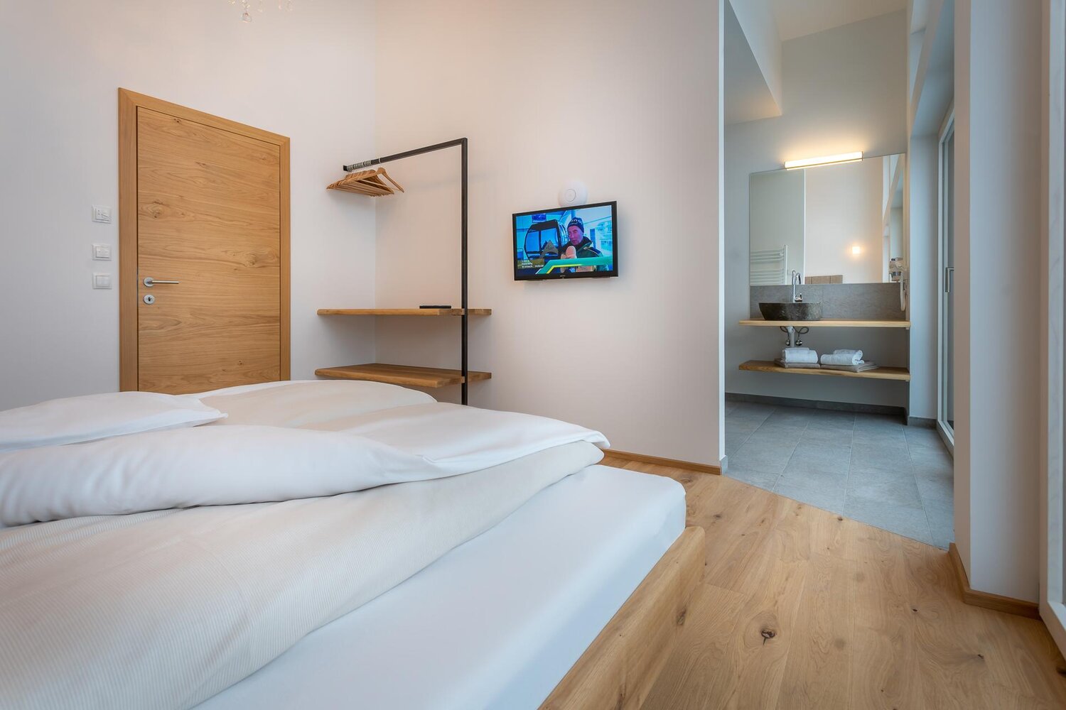 Jedes Apartment ist ein Unikat, Mut zum Anderssein ist hier kein Konzept, sondern Haltung. Von 50 bis 130 m², mit 1–3 Schlafzimmern für 2 bis 10 Personen – vom gemütlichen Basic bis zum exklusiven Loft mit privater Sauna und XXL-Terrasse. Alle Apartments sind voll ausgestattet mit hochwertigen Küchen, edlen Materialien und allem, was das Leben schöner macht. Und das Beste: immer mit Balkon, Terrasse oder Garten – und einem 360°-Panoramablick