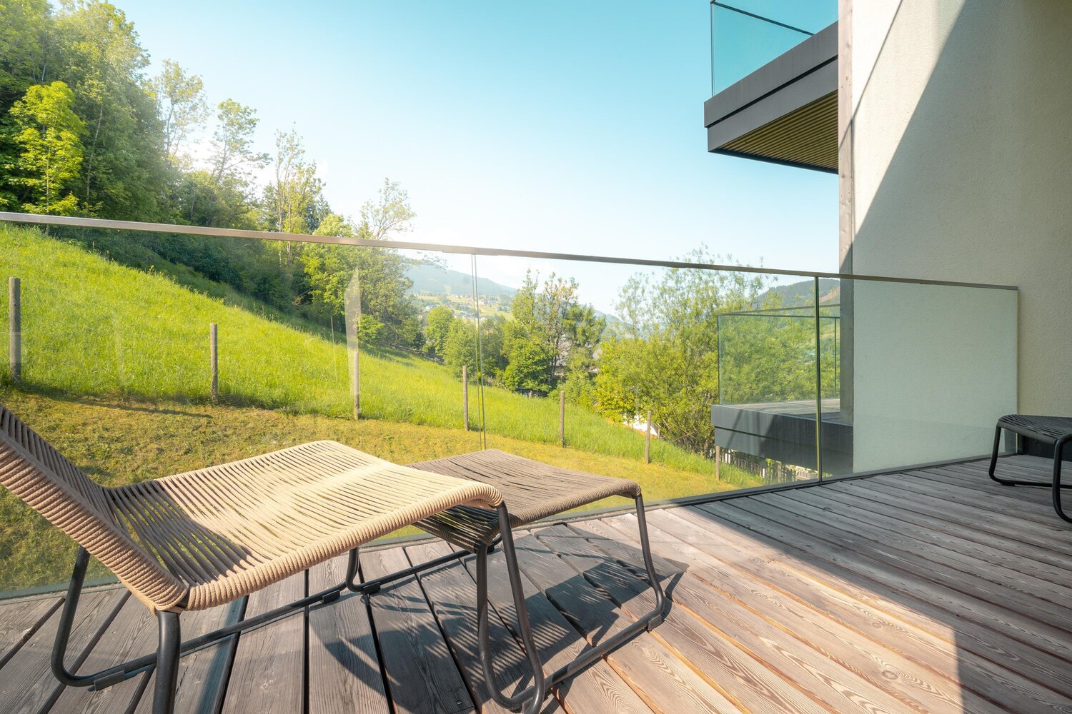 • 2 Balkone zugänglich vom Wohnzimmer und teilweise vom Schlafzimmer in Richtung Norden mit Dachsteinblick oder in Richtung Westen mit Blick ins Ennstal