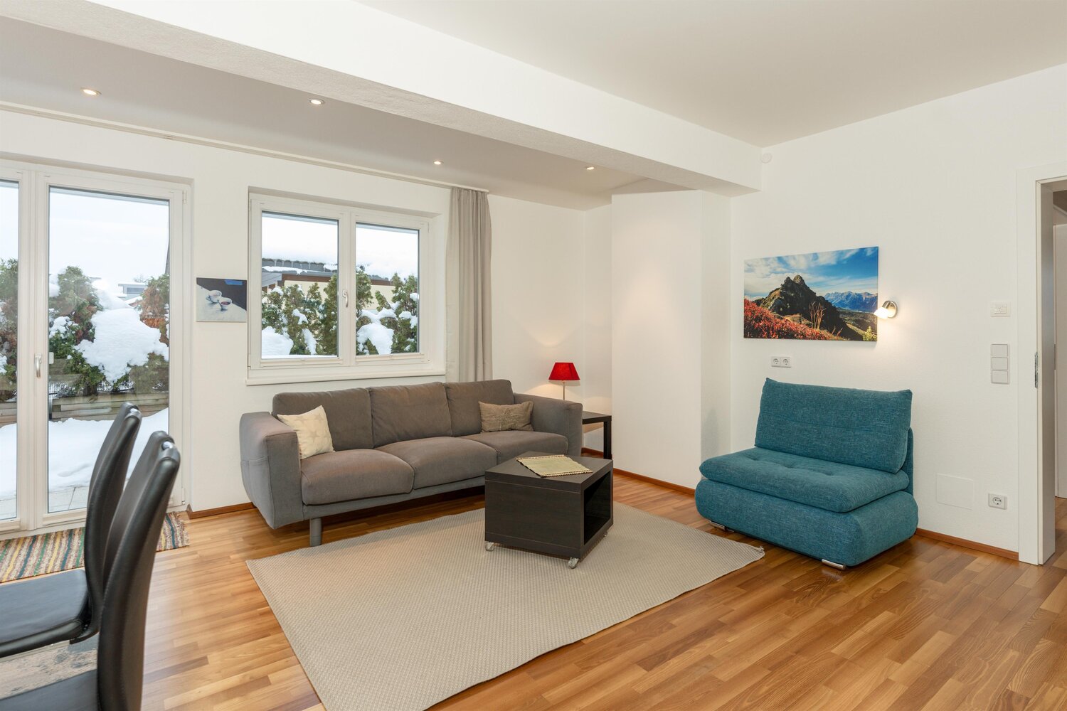 Drinnen erwartet Sie kein Standard, sondern persönlicher Stil mit klarer Linie. Drei Appartements – alle hochwertig eingerichtet – bieten viel Raum zum Sein. Ob mit Terrasse im Obergeschoss oder mit direktem Gartenzugang – hier wohnen Sie offen, hell und mit einem feinen Gespür für Atmosphäre. Das Penthouse bietet zusätzlich eine Infrarotkabine für entspannte Abende mit Bergblick.