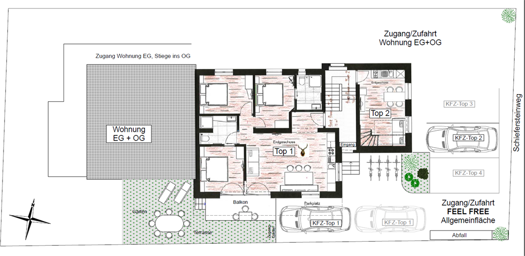 Für das Top 2 steht ebenfalls ein kostenfreier Parkplatz zur Verfügung. -