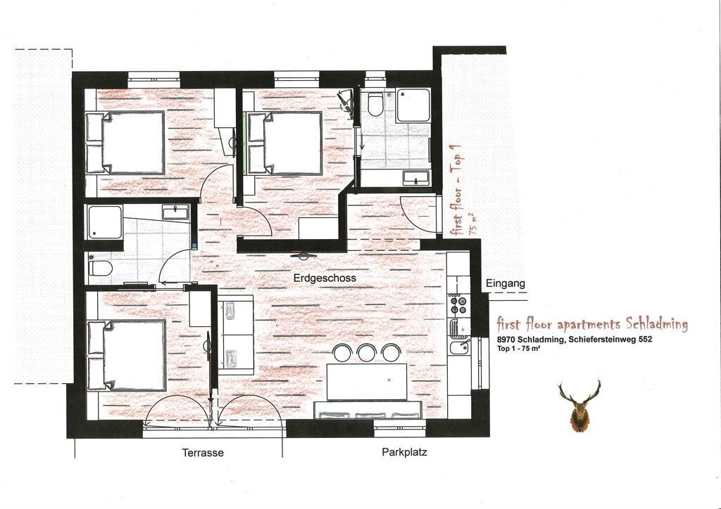 Ein Skidepot bei der Planai sowie Parkplätze direkt vor dem Haus sorgen für zusätzlichen Komfort. Ob Skifahren, Wandern oder einfach genießen – hier wohnen Sie ruhig, zentral und mit Stil.