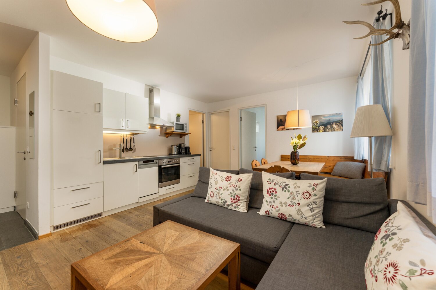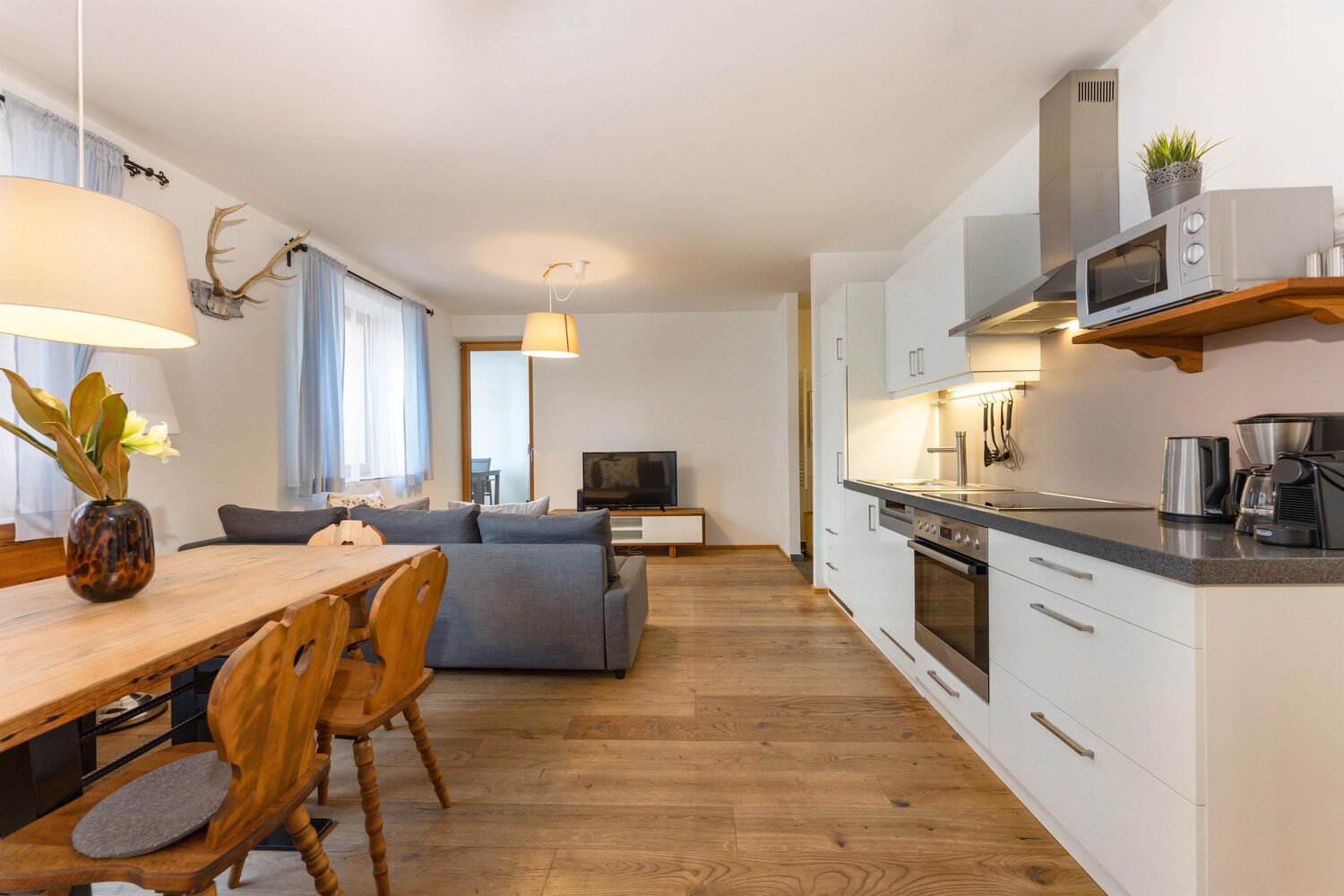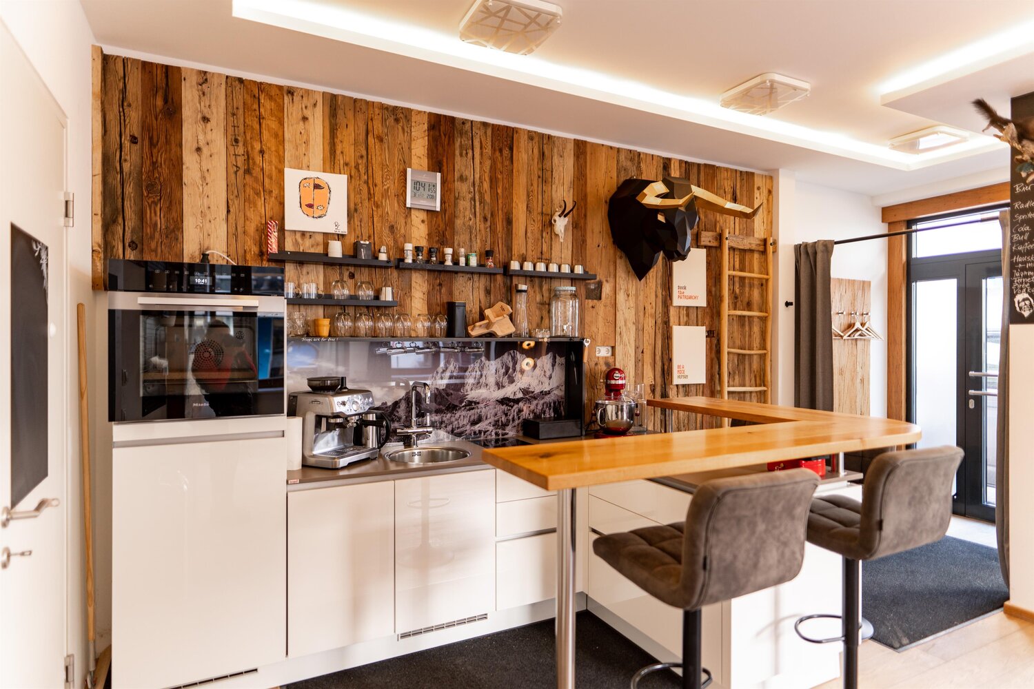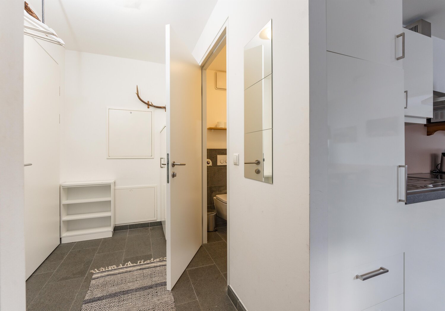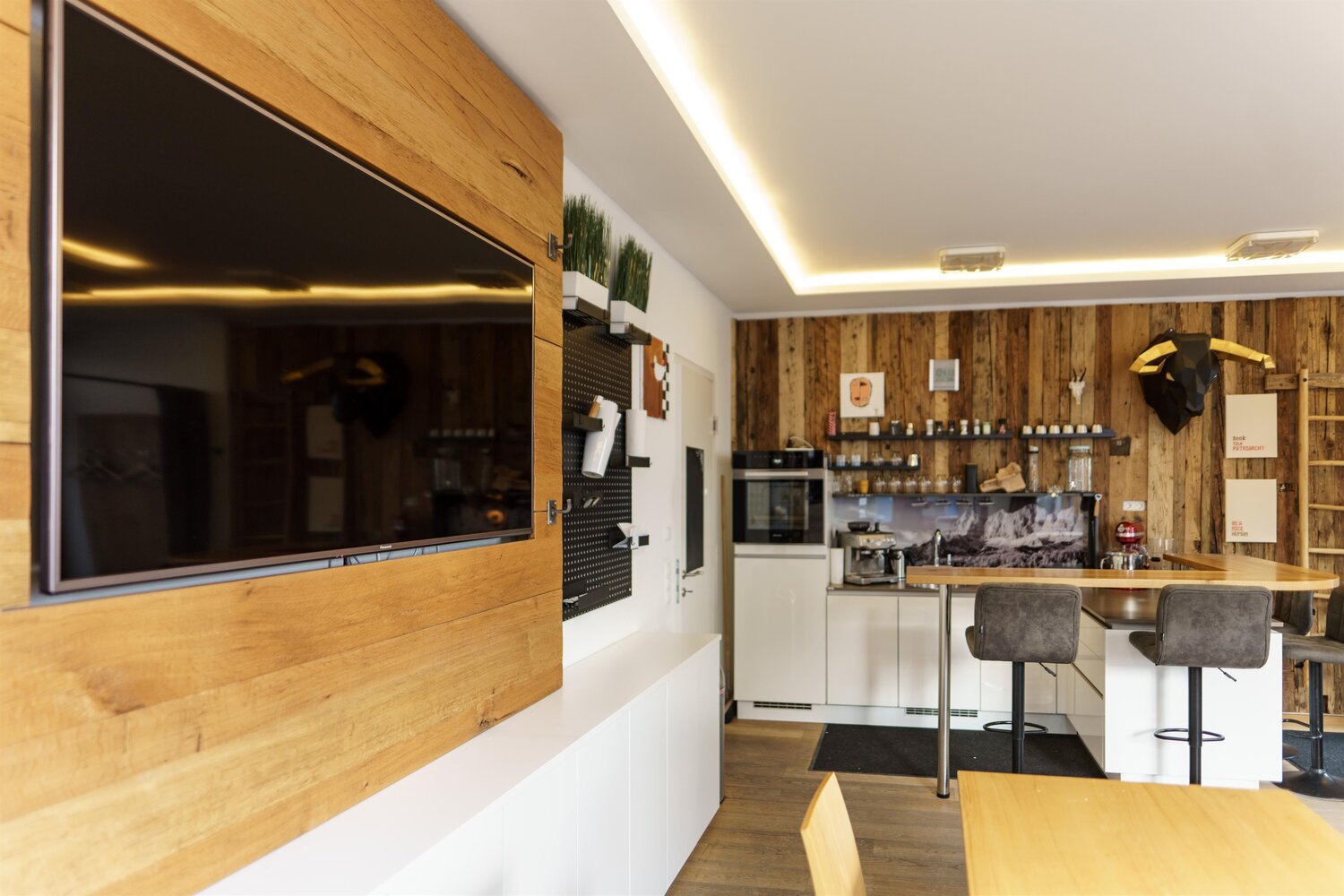 Ein Lift, ein Ski- und Fahrradraum mit allem, was dazugehört, machen das urbane Leben in alpiner Kulisse perfekt.