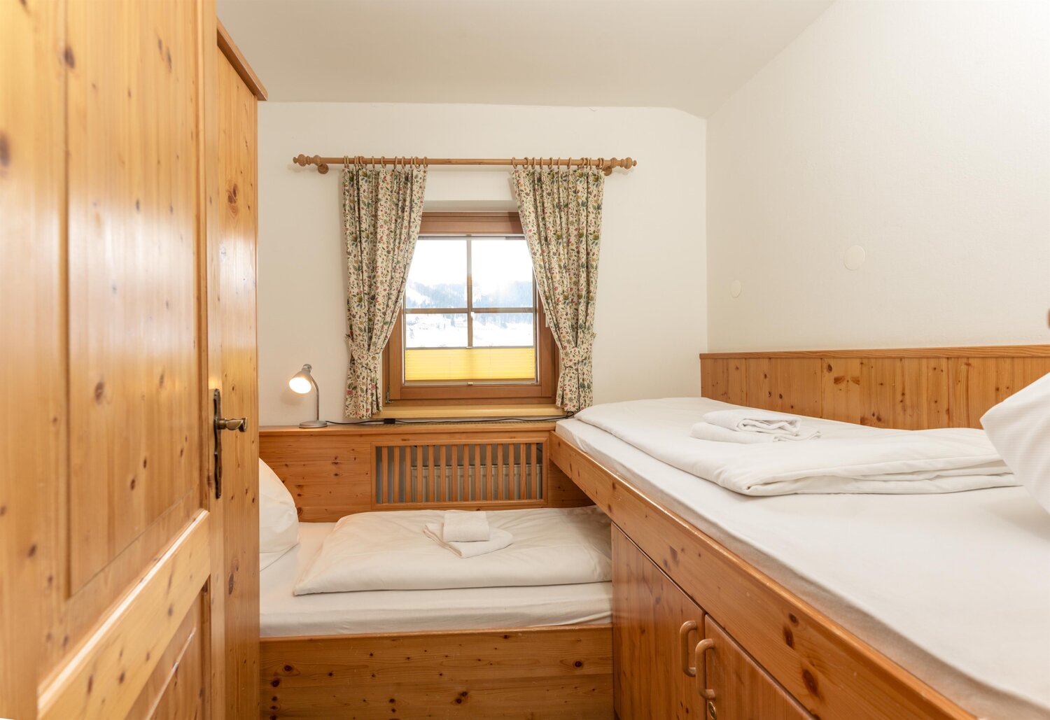 • 1 kleines Schlafzimmer mit 2 Betten (200 x 90 cm ) für Erwachsene geeignet