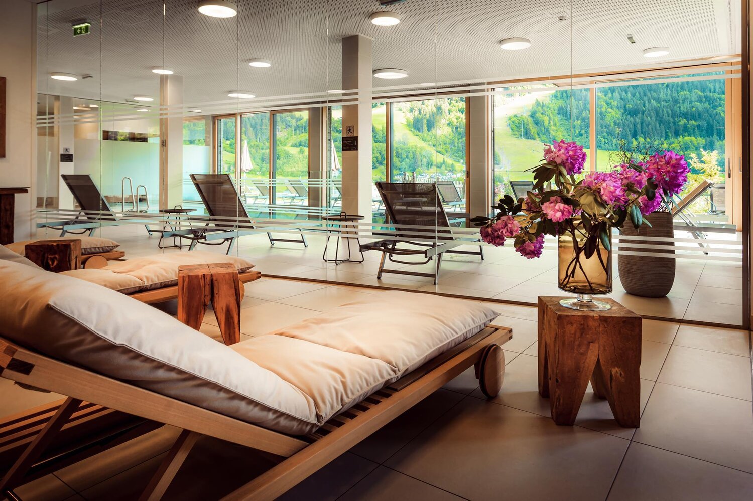 Der Spa-Bereich liegt im Gartengeschoss der Lodge Planai und ist über den Verbindungsgang von allen drei Häusern erreichbar.