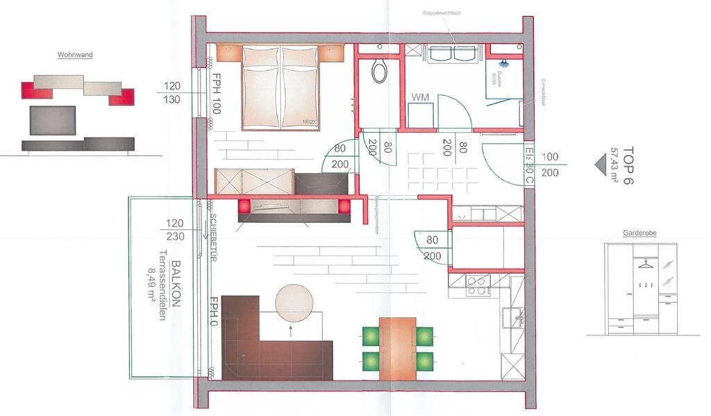 Für bis zu 4 Personen, 57m² Wohnfläche, 1 OG.