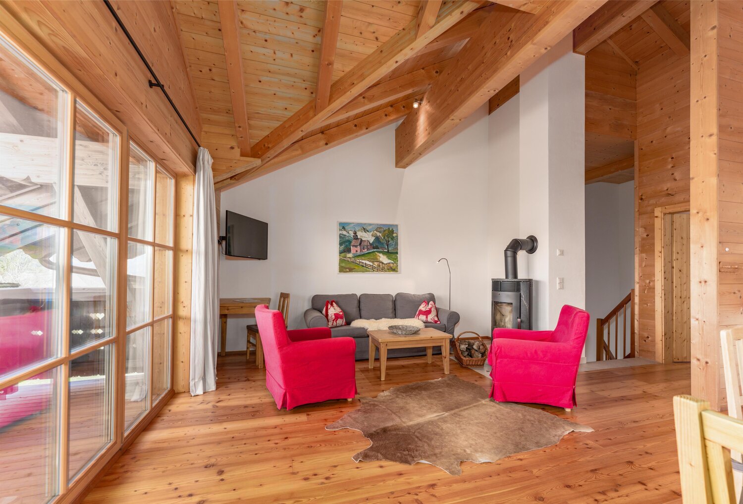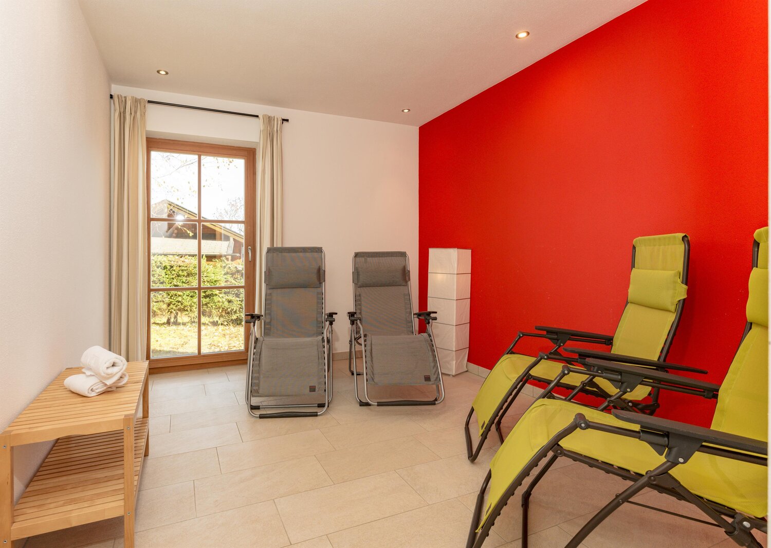 Jedes Chalet bietet großzügige Panoramafenster mit spektakulärem Blick auf den Dachstein, einen gemütlichen Schwedenofen für kalte Winterabende und einen eigenen Wellnessbereich mit Sauna und Ruheraum. Ob auf der Terrasse oder dem Balkon – die Natur ist immer präsent, während Sie in einem Ambiente aus Holz, Stil und Hightech entspannen.